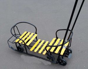 Санки для двойни Погодки Универсал 1 подходят для двоих детей от 1 до 3 лет. Максимальная нагрузка до 50 кг. Имеют прочню стальную рама с выдвижными 6 (шестью) колесами. Положение спинок регулируется: паровозиком или лицом друг другу.
