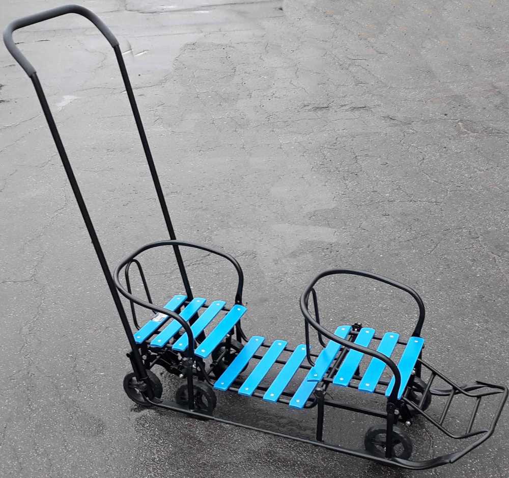 Санки Galaxy Black Auto Для двоих с толкателем и колесами. Удобно использовать для детей погодок, двойни, близнецов. Прочные металические санки производства России. Можно использовать по снегу и асфальту. Рычаг переключения на колеса простой в использовании.