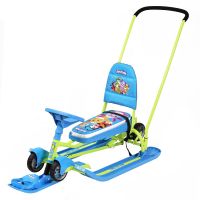 Снегокат Тимка спорт 6 Лунтик и с колесами для детей от 2-3 лет и старше, максимальная нагрузка на колесах до 30 кг, на полозьях до 100 кг. Родительская ручка и автомтический трос. Рисунок с любимыми героями Лунтик.